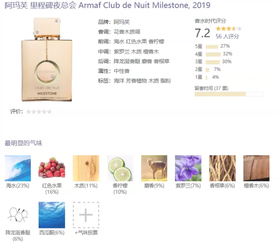 - 花香木质调Milestone【里程碑夜总会】正装香水拆封不售后105ml