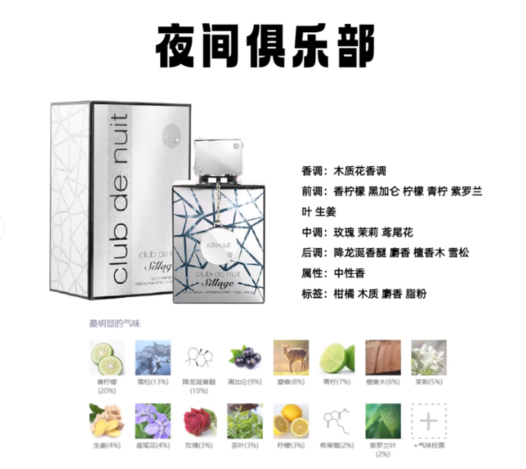 夜間俱樂部香水Armaf阿瑪芙Clubde Nuit夜店狂歡男女士中東parfum