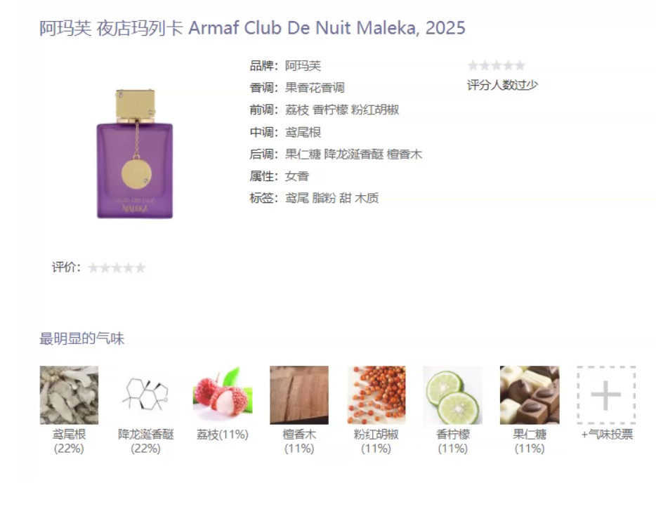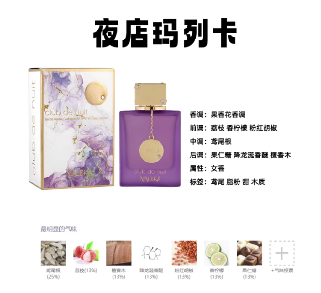 果香花香调 Maleka【夜店玛列卡】正装香水拆封不售后105ml