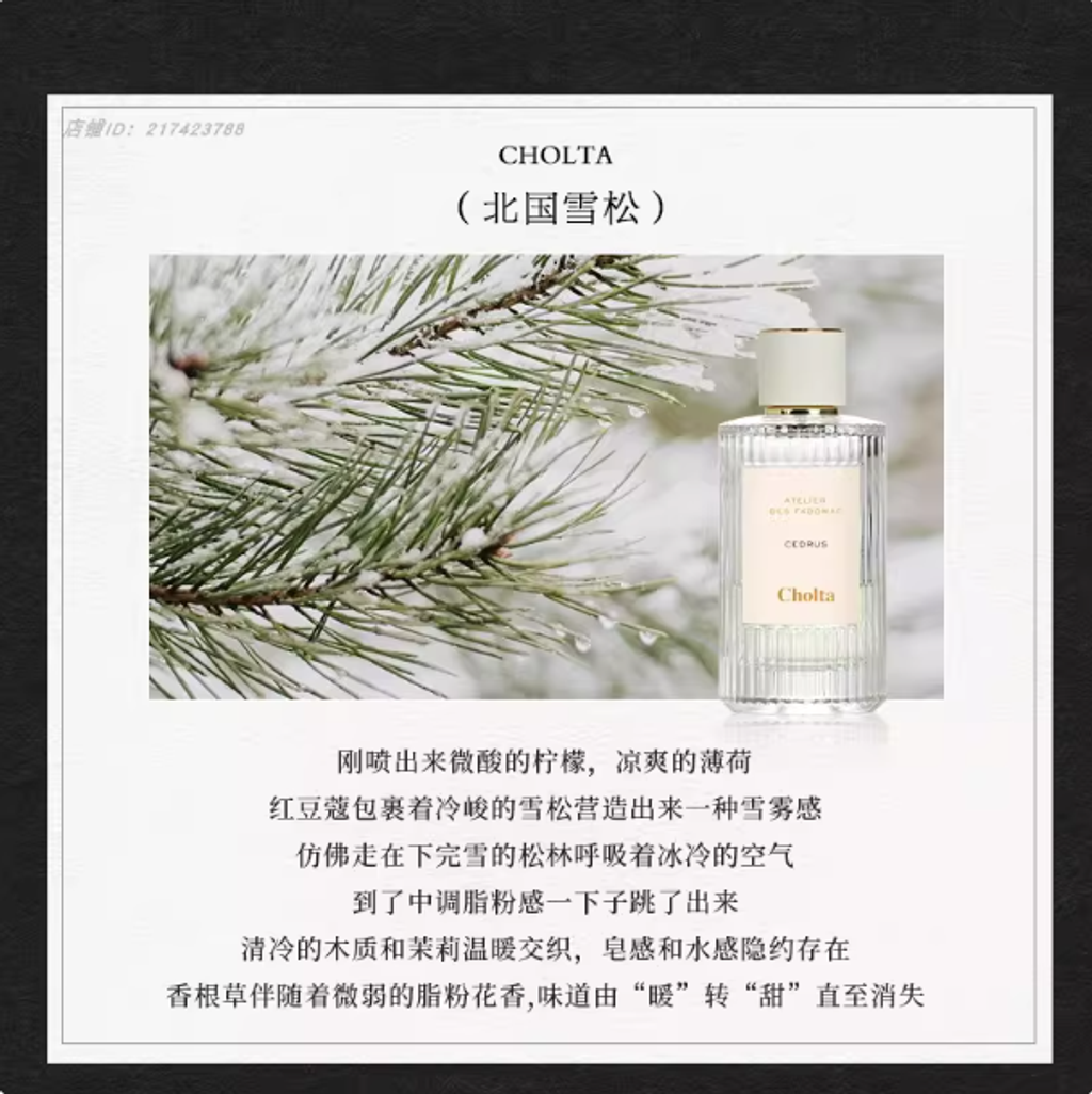 Cholta香水北國雪松煙雨茉莉木蘭詩語漫境橡野仙境紙莎草花園正裝