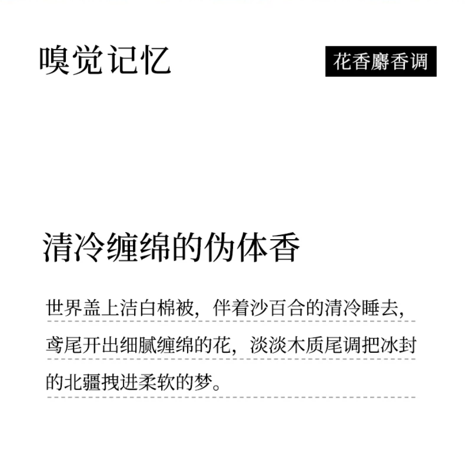 - 花香麝香调 阿勒泰的雪【清冷缠绵伪体香 温柔贵气】30ml